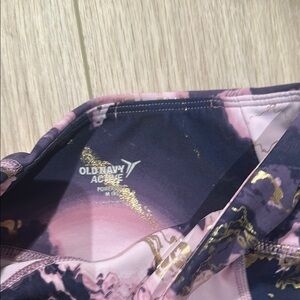 These Old Navy leggings showcase a captivating marble pattern in pink and black, offering a stylish and comfortable fit. The high-waisted design ensures a flattering silhouette, while the soft, stretchy fabric provides ease of movement for any activity.