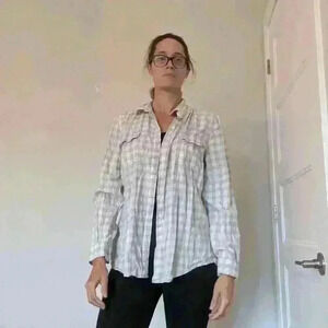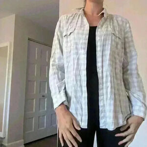 Old Navy , Plaid Button Down Shirt, Grey and white, Size L