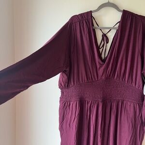 Old Navy Plum Maxi Dress XXL Smocked Waist Long Sleeve V-Neck Boho New NWT