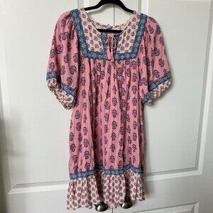 Old Navy Puff Sleeve Printed Mini Swing Dress Womens L Painted Posies Pink