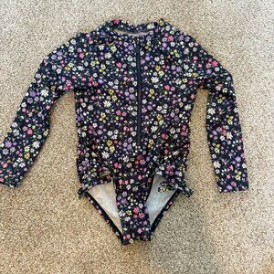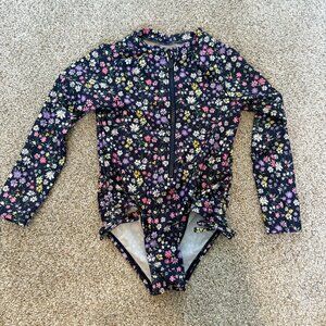 Old Navy Rash Guard Style Long Sleeve Navy Floral Print Bathing Suit Size 3T