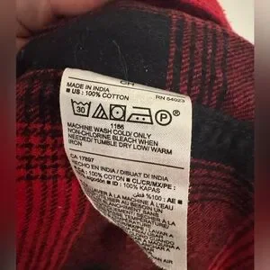 Classic checkered pattern. Button-up front. Comfortable fit. 100% cotton.