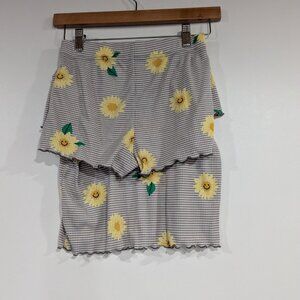 Old Navy Ribbed Lettuce Hem Sunflower Print Pajama Set Grey Yellow Size Medium