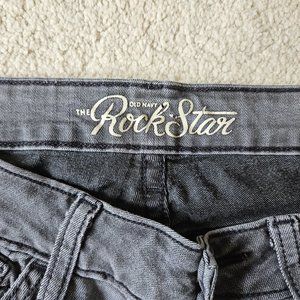 Old Navy RockStar skinny jean/jeggings with stretch. These are well worn, especially at inner thigh area, but still comfy! Faded grey denim look.
