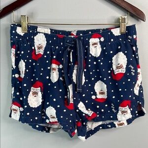 Old Navy Santa Print Flannel Boxer PJ Shorts Navy Red Blue Elastic Drawstring M