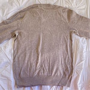 🤍 V-neck beige sweater with a disrupted semi-checkered/plaid pattern. Light material but still warm. The colour is more beige/tan in person.