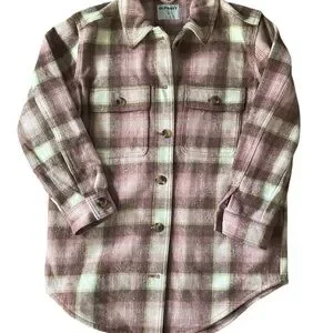 Brand new with tags Old Navy Soft-Brushed Utility Shacket in pink plaid. Unlined, thick, warm Shacket with pockets. Measures approximately 22” armpit to armpit and 32” shoulder to hem.