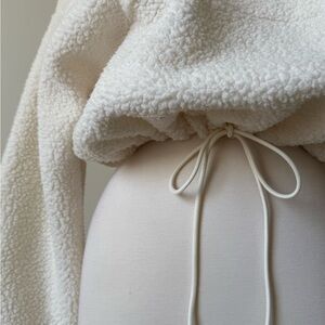 sherpa pullover, fleece sweater, teddy sweater, cozy sweatshirt, cropped fleece, lounge wear, neutral sweater, capsule wardrobe, comfy chic, winter layering, athleisure, minimalist style