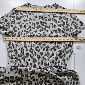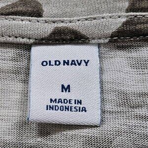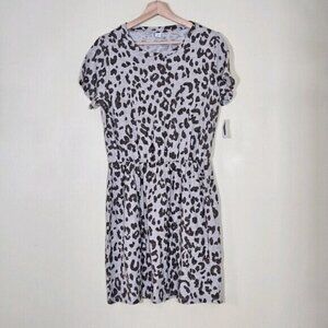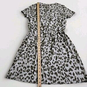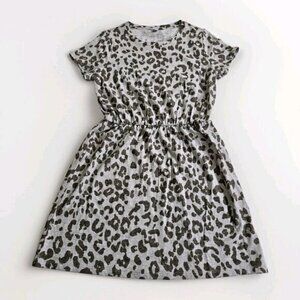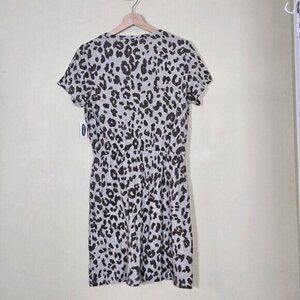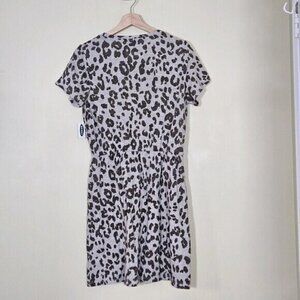Old Navy Shirt Dress Womens M Beige Snow Leopard Cinched Waist SS Summer Cottage