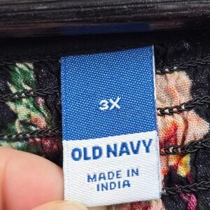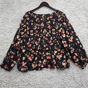 Old Navy Shirt Womens 3X Black Floral Smocked Puff Sleeves Dark Cottage Peasant