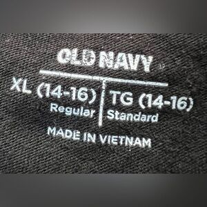 Nothing says it better in a minimalist capsule wardrobe than a plain black basic tee. Old Navy size 14/16. Outgrown. Worn a couple times under flannel shirts. Great used condition. We are a smoke-free home.