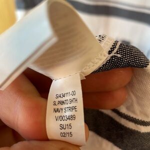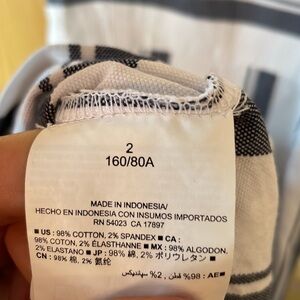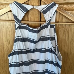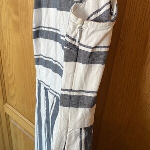 EUC white and blue striped linen feel dress with size zip and rear button closure. Size 2.