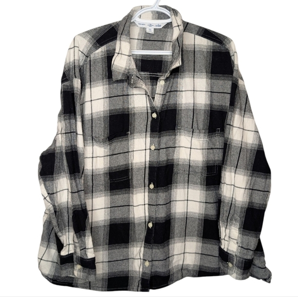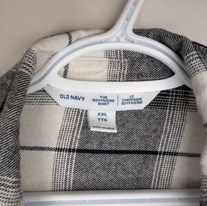 Old Navy The Boyfriend Shirt Black White Cotton Flannel Plaid Top Women's XXL