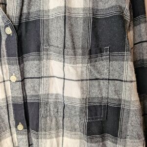 Super cozy and versatile Old Navy "The Boyfriend Shirt" in classic black and white plaid. This is a lightweight cotton flannel, perfect for layering or wearing on its own. It has a relaxed, oversized fit for comfortable weekend wear.