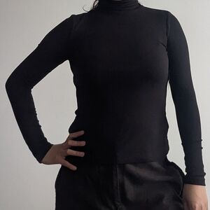 Stay cozy and stylish with this black turtleneck sweater. Perfect for any occasion, this sweater offers both comfort and elegance.
