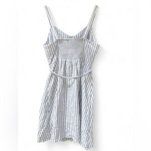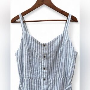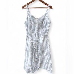 Old Navy White and Blue Striped Cotton Mini Euro Summer Button Up Waist Tie Dress Large Petite