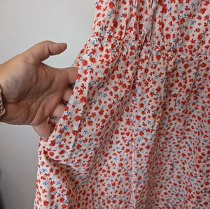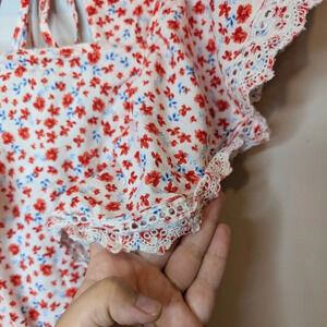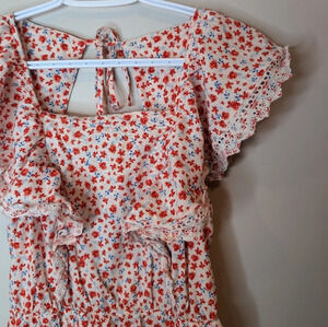 Old Navy White Red Floral Waist-Defined Flutter-Sleeve Tie-Back Mini Dress M