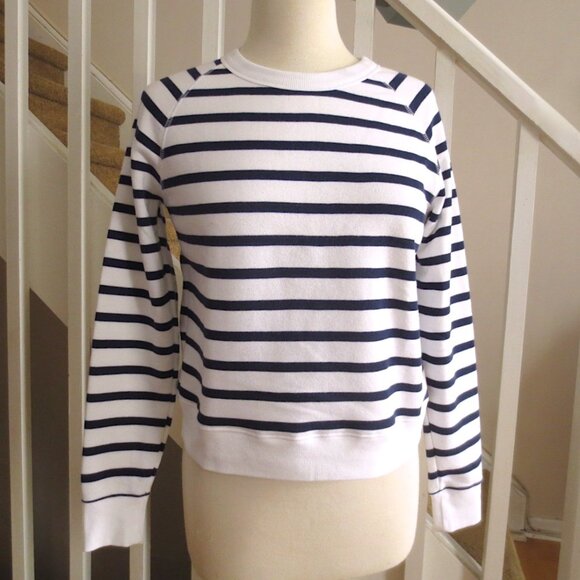 Old Navy White and Navy Blue Simple Classic Nautical Striped Raglan Sweatshirt