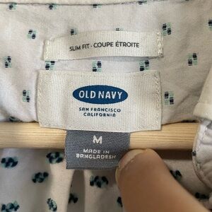 Old Navy White w Stitched Print Long Sleeve Button Up Shirt