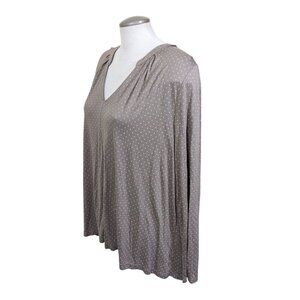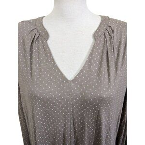 Old Navy Womens Blouse XXL 2XL Taupe Dot Long Sleeve V Neck Lightweight Pleats