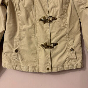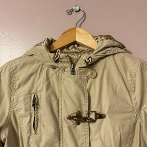Old Navy Women's Brown Long Sleeve Hooded Coat Zip Toggle Clip Detail Size M