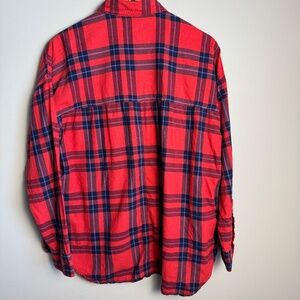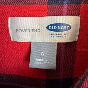 Old Navy Women's Large Red Plaid BOYFRIEND Button Up Flannel Shirt Casual Relax