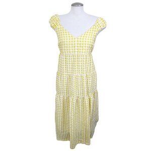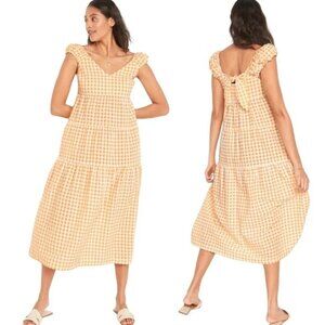 Old Navy Womens M Fit Flare Tiered Seersucker All Day Yellow Gingham Maxi Dress