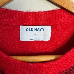 Old Navy Women's Red Buffalo Square Long Sleeve Acrylic Blend Sweater Medium