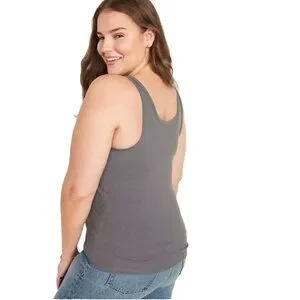 Old Navy Womens Size 2X Gray Scoop Neck Rib Knit First Layer Tank Top Fitted