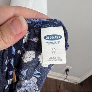 Old Navy Womens Size XS Blue Floral Tank Top Blouse High Neck Keyhole Button