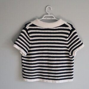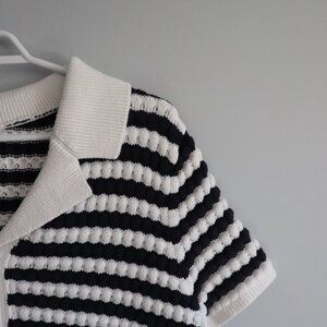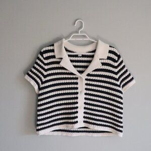 Old Navy Womens Sz XL Black Striped Button-Down Crochet V-Neck Collar Sweater