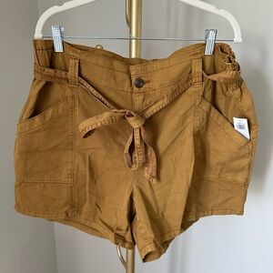 Old Navy Women's Tan Paper bag Shorts with Belt Large 100% Cotton