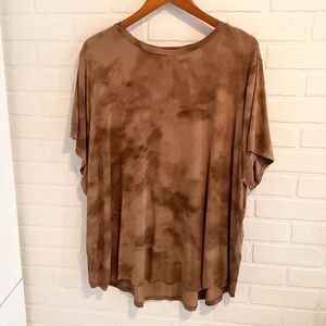 Old Navy Women’s Tee Short Sleeve Tie Dye Brown Lagenlook Tan Cream Sz 3X