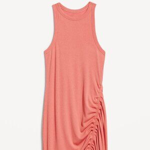 Old Navy Women's UltraLite Racerback Rib-Knit Ruched Dress Aspen Summer