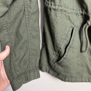 Old Navy Women's Zip Up Linen Field Jacket Collared Army Green Medium Outdoor