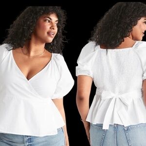 Old Navy Wrap Tie Blouse Top Shirt 100% Cotton Shirred Smocked Short Sleeve