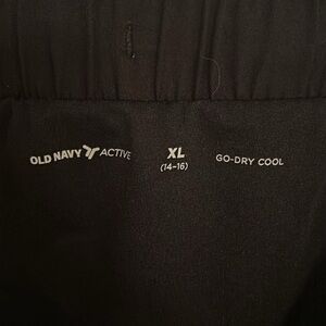 Old Navy active go-dry cool black shorts, size XL (14–16) youth. Would also fit a women’s size 4-6 (small).
