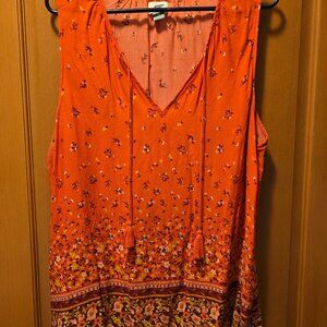 This Old Navy boho sleeveless orange blouse with tassels is soft and flowy - perfect for summer! The pattern is really lovely.