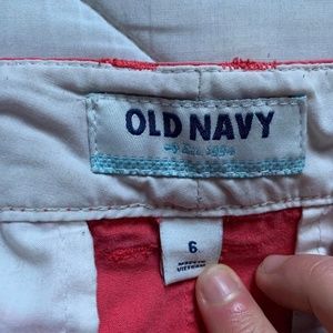 Old Navy women's orange and blue chino shorts with anchor motif, size 6