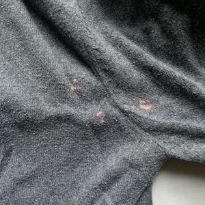 Old Navy women's preppy gray and white long sleeved cardigan, size medium. Soft and stretchy material, sleeves taper at the end. There are a couple of tiny bleach stains on the left side near the armpit area (see picture 4) but they are barely visible if at all when the garment is on/in motion.