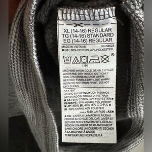 Old Navy Boys Long Sleeve Short- Size XL. Washed and worn several times with minimal pilling & fading. Rrefer to photos for visual of the condition of the item. 60% Cotton 40% Polyester.