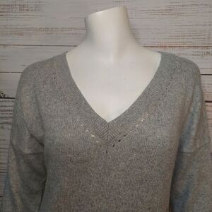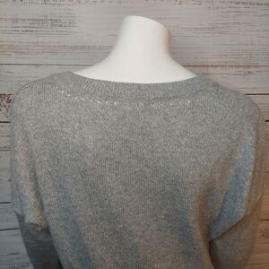 Cozy gray sweater dress. V-neckline. Long sleeves. Perfect for layering.