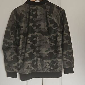 This Old Navy bomber jacket in a striking green hue combines style and comfort with its ribbed cuffs and classic bomber design. Crafted for casual wear, it offers a versatile look perfect for everyday outings. The jacket's sleek silhouette and quality material make it a must-have addition to your wardrobe.