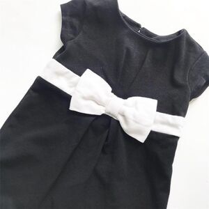 Old Navy black w/white bow dress EUC 12-18 months