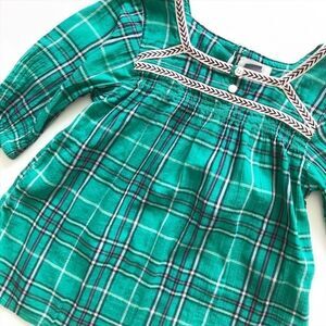 Old Navy green plaid crinkley blouse EUC XS(5T)