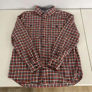 Old Ranch Men’s Flannel Plaid Button Up Shirt Size Large Rust Multi Colour