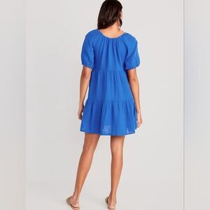 Old navy Cotton Puff-Sleeve Tiered Mini Swing Dress sapphire blue size M Tall