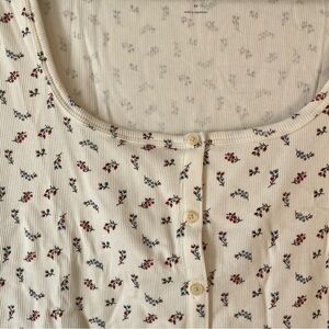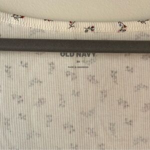 This charming and comfy Old Navy ribbed knit top features a delicate allover floral print and scoop neckline with a faux button-front detail. Made in a soft, stretchy cotton blend with subtle ribbing for texture and shape.