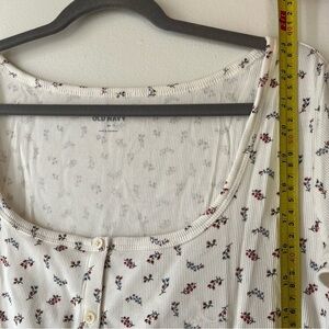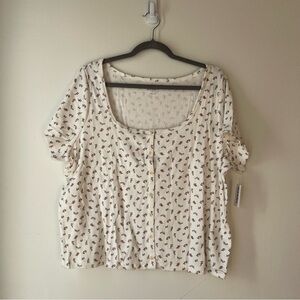 Old navy Ribbed Floral Button Top Plus Size 3X Cream Stretch Scoop Neck NWT
