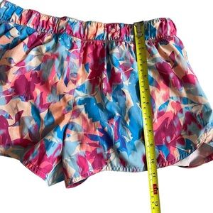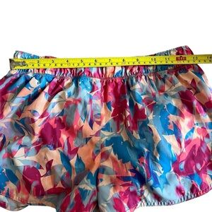 Vibrant and sporty Old Navy Active running shorts in size Small. Features a colorful abstract pink, blue, and peach pattern with a comfortable elastic waistband and built-in lining. Made with StretchTech fabric for ease of movement and quick-dry performance. Perfect for running, workouts, or warm weather lounging. Excellent condition.
